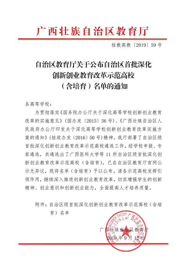 日前,广西壮族自治区教育厅下发《自治区教育厅关于公布自治区首批深化创新创业教育改革示范高校(含培育)名单的通知》(桂教高教〔2019〕59号),qm球盟会荣获“自治区级首批深化创新创业教育改革示范高校”称号。