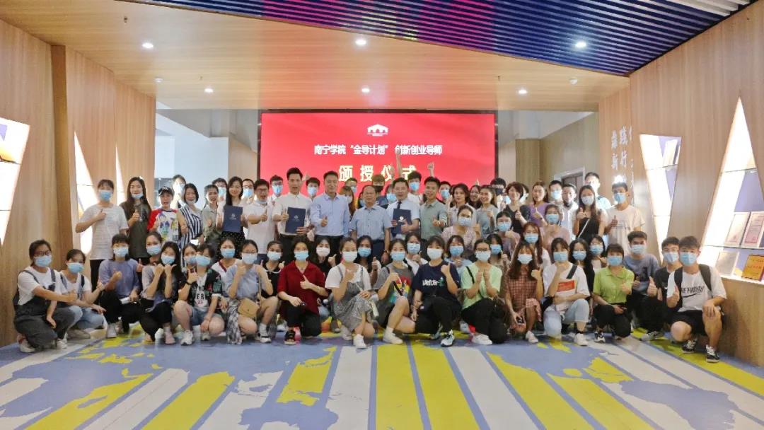 陈雄章副校长为甘昌金、李顺华、文山姿颁发聘书,正式聘任他们为qm球盟会“金导计划”创新创业企业导师。