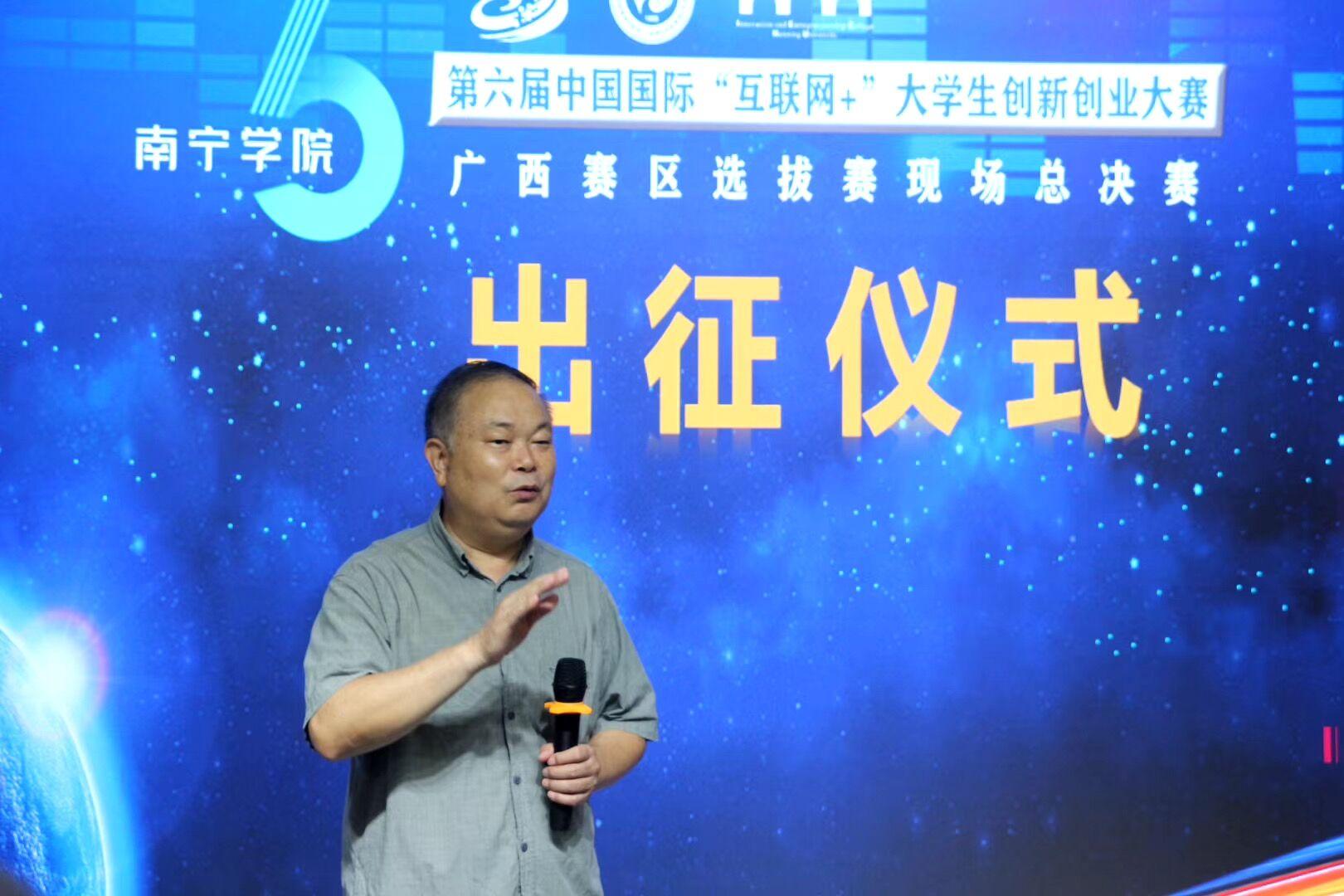 8月5日早上8时,学校在创新创业生态基地举行第六届中国国际 “互联网+”大学生创新创业大赛广西赛区选拔赛现场总决赛出征仪式。校长赖每,教务处处长黄瓅,进入广西赛区选拔赛现场总决赛的参赛学生团队、指导老师出席了出征仪式,仪式由创新创业学院院长马骏博士主持。