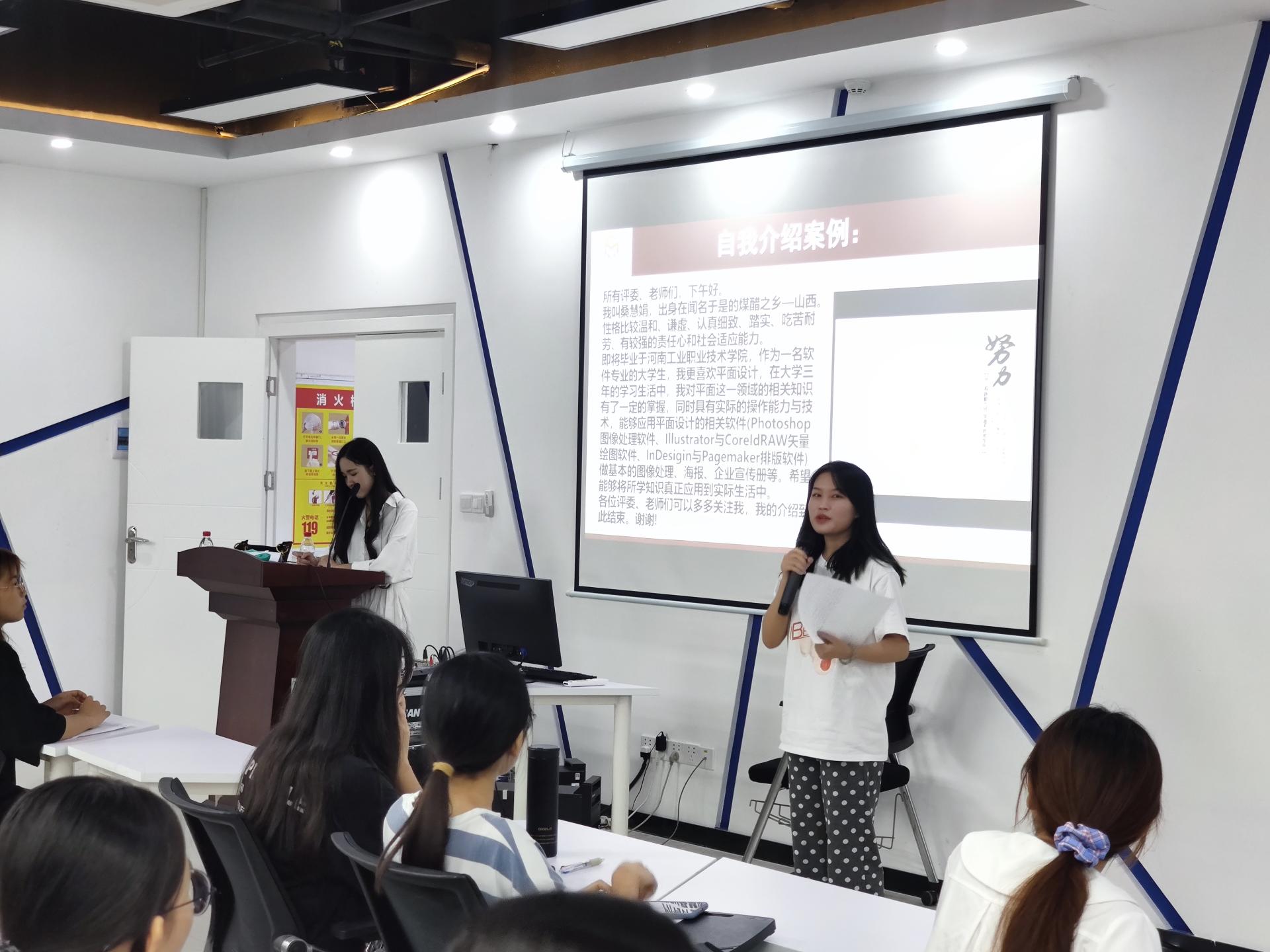 随后,同学们亲自尝试一分钟的自我介绍演讲,其中有同学还使用了比赛用语言做了一次尝试。培训师指出了他们介绍中需要修改的部分,鼓励同学们不断完善文案,争取在比赛中发挥自己最棒的实力。