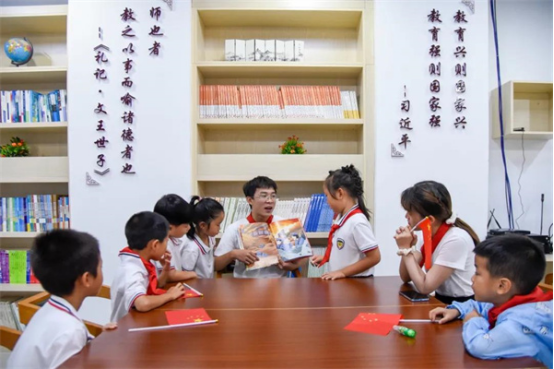 qm球盟会的大学生们带领小同学们一起读英雄绘本