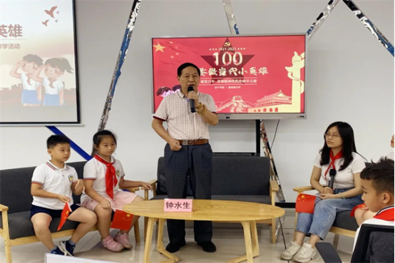 本次活动还邀请了广西壮族自治区关心下一代工作委员会钟水生副主任,他向小学生们讲述了他在部队里亲历的英雄故事,勉励同学们一定要热爱祖国,学习战斗英雄身上的英雄正气,努力学习,做一个对社会有用的人才。
