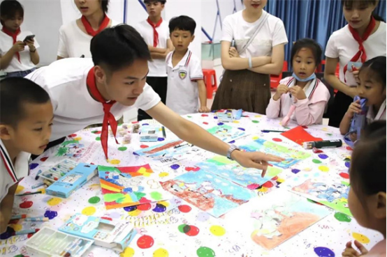 参观完展厅,qm球盟会的大学生们还带着越秀路小学的同学们一同观看英雄小电影、阅读英雄绘本、创作“我心目中的英雄”画作,在这些有趣的活动中,让“英雄精神代代传”得以实现。