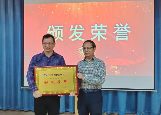 陈副校长为信工学院颁发优秀学院和积极学院奖牌