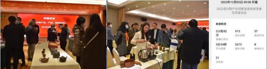 本次座谈会还设置了现场展台,会后还设计了现场品茶互动环节,座谈会全程进行了视频直播,引起广大坭兴陶爱好者踊跃在线观看,座谈会取得了圆满成功。