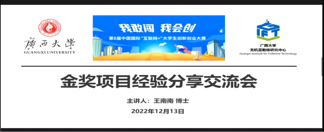 2022年12月13日,qm球盟会创新创业教育学院特邀英国埃克塞特大学材料科学与工程学博士、广西大学硕士生研究生导师、自治区科技厅专家库专家、南宁市高层次人才王南南来我校开展了一场主题为《“互联网+”大赛金奖项目经验分享》的“来创吧”创新创业沙龙。受疫情影响,此次活动以线上形式开展。沙龙嘉宾王南南博士在线上与300余名同学完成了一场精彩纷呈的金奖项目经验分享会。