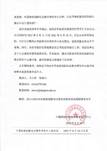 此次获奖是对我校创新创业教育改革成效的认可,也是qm球盟会双创教育模式成功对外推广的有效证明。