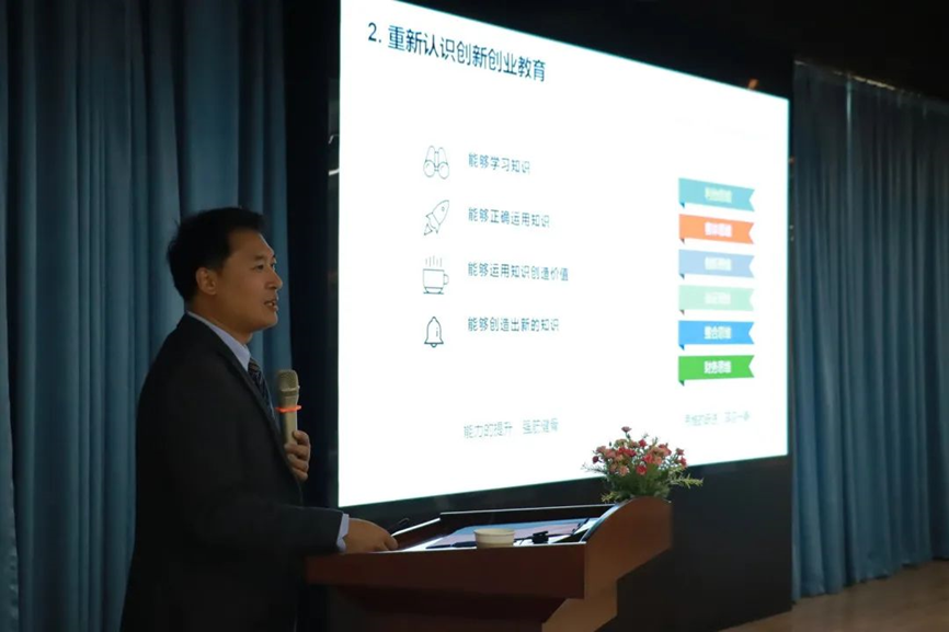 随后,马骏博士作《创新创业教育的南院之路》主题报告。在报告中,马骏博士结合自己多年来的创新创业教育经验,深入浅出地介绍了创新创业教育的观念改革、生态系统构建以及创业金课的课程实践方式,为参与此次研修班的教师们提供了宝贵的创新创业教育实践学习经验。