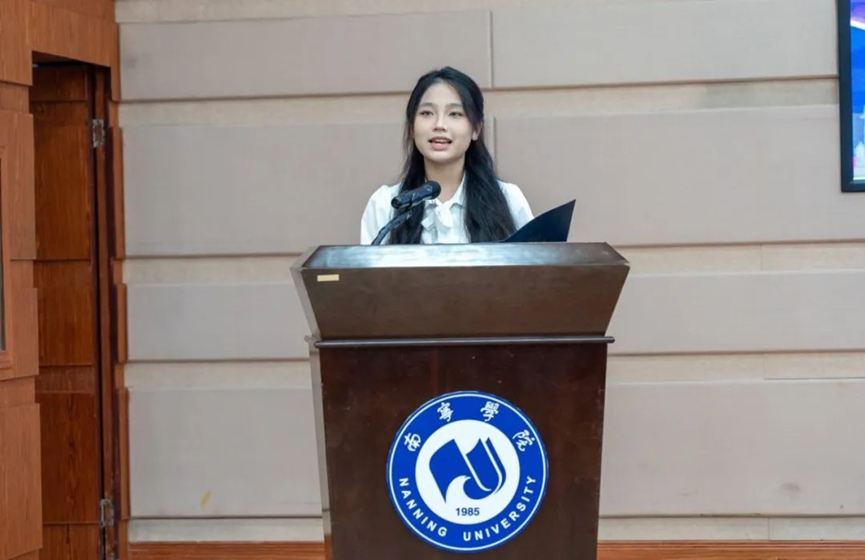 学生黄佳艺汇报了学习心得,她表示,习近平总书记回信让新时代大学生明白所肩负的创新重任,同学们要以大赛为平台,不断锻炼自己应用所学知识解决实际问题的能力,将自己的青春梦融入伟大的中国梦,为中国式现代化建设贡献自己的力量。