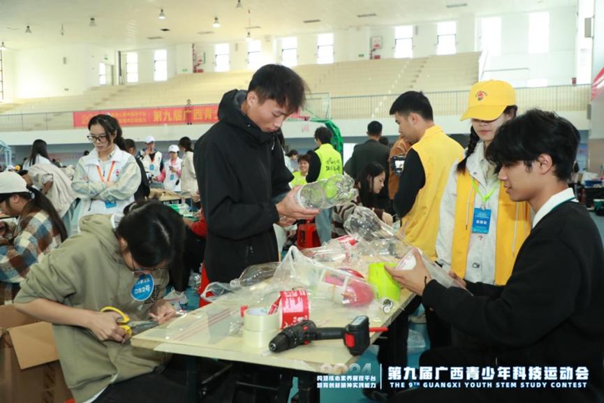 2024年11月23日至24日,第九届广西科技运动会在南宁市第三中学举行。我校通过全校选拔,派出了10支参赛队伍,凭借卓越的科技创新能力和团队协作精神,斩获一等奖3项,二等奖2项,三等奖2项。其中,两支队伍分别获得“纸桥承重”赛项大学组冠军、“自制小车竞速”赛项大学组亚军的优异成绩。我校荣获“优秀组织奖”。