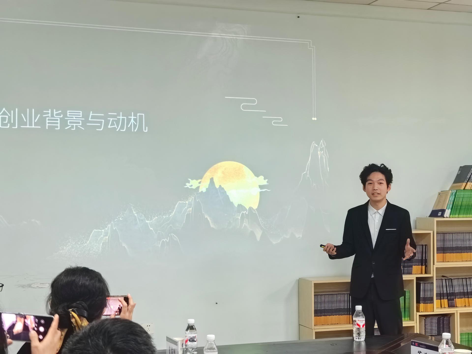 座谈会尾声,我校信息工程学院韦杰泽同学结合自身参赛经历,分享了中国国际大学生创新大赛国赛金奖项目的备赛历程、核心创新点及团队协作经验,其精彩分享获得与会教师的高度认可。