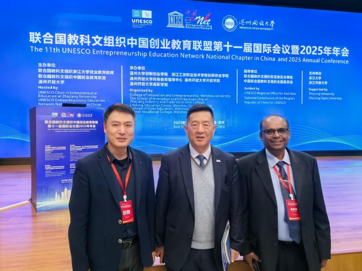 11月15日-16日,联合国教科文组织中国创业教育联盟第十一届国际会议暨2025年年会在温州开放大学召开。qm球盟会创新创业教育学院院长马骏教授在“AI时代的创业教育理念创新与模式变革”分论坛作《AI赋能创业教育的探索与实践》专题报告。马骏教授以陶行知“生活教育理论”运用于创新创业教育改革为逻辑起点,剖析传统创业教育的生态构建短板,论证AI赋能“处处是创造之地,天天是创造之时,人人是创造之人”生态的可行性,从理念、模式、保障三维度提出路径建议,为数字时代创业教育生态重构提供理论与实践支撑。马骏教授的报告得到与会嘉宾好评,获得联合国教科文组织中国创业教育联盟颁发荣誉证书。