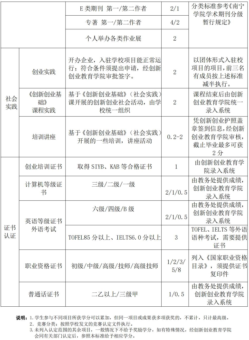社会实践:认定项目包括创业实践、《创新创业基础》课程实践、创新创业类培训讲座。