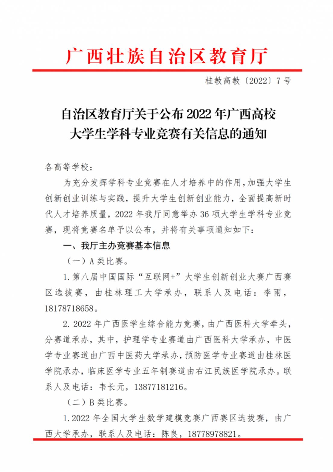 自治区教育厅发布的学科专业竞赛相关信息如下