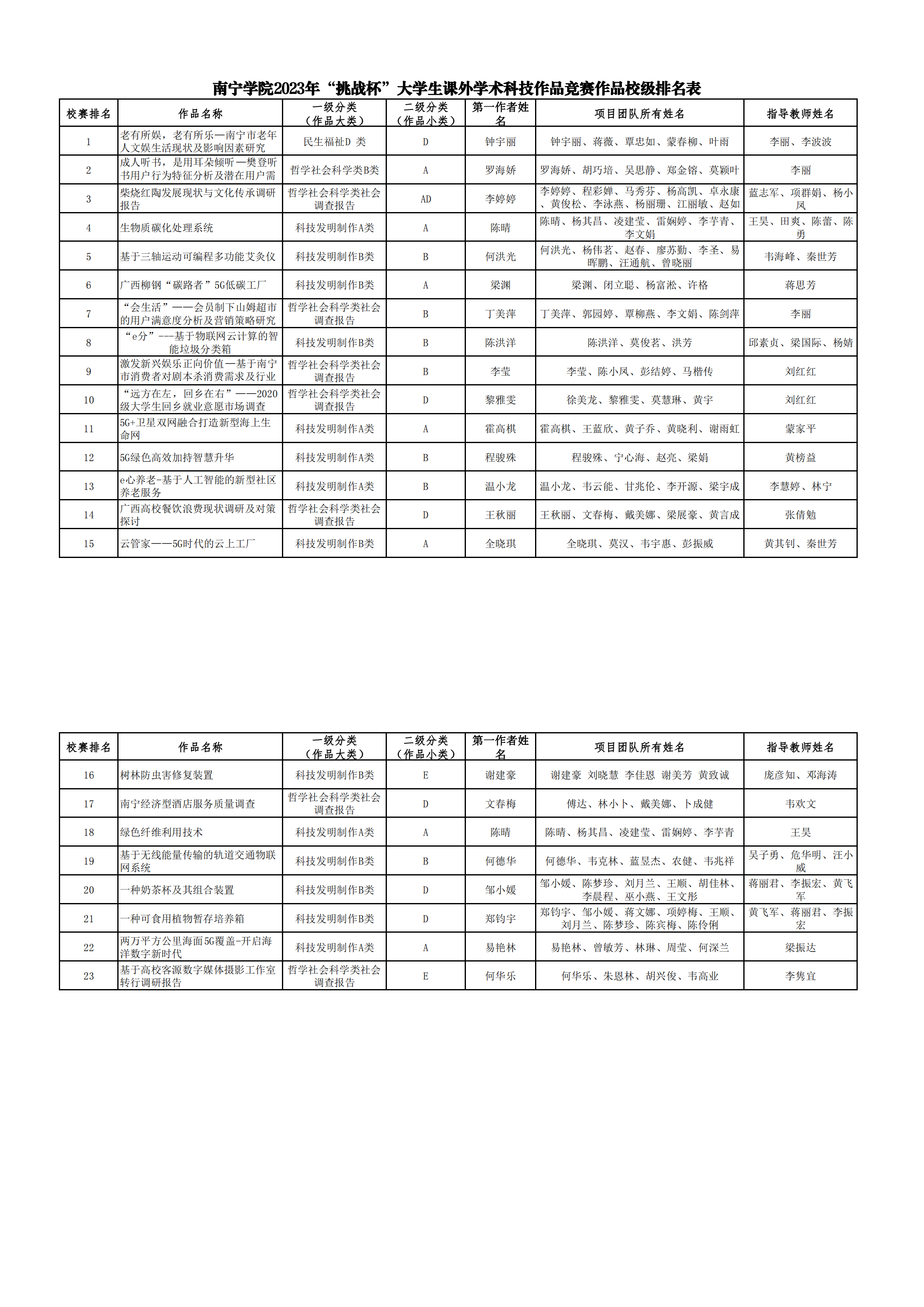 qm球盟会2023年“挑战杯”大学生课外学术科技作品竞赛作品校赛排名表.pdf