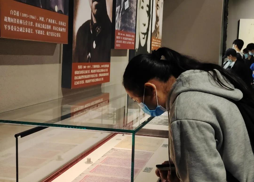 同学们观看昆仑关战役历史资料