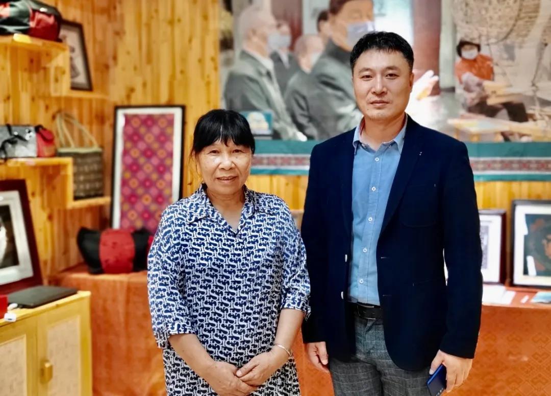 谭湘光大师为同学们介绍壮锦