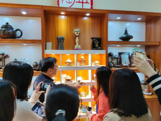 同学们听讲解员介绍坭兴陶历史