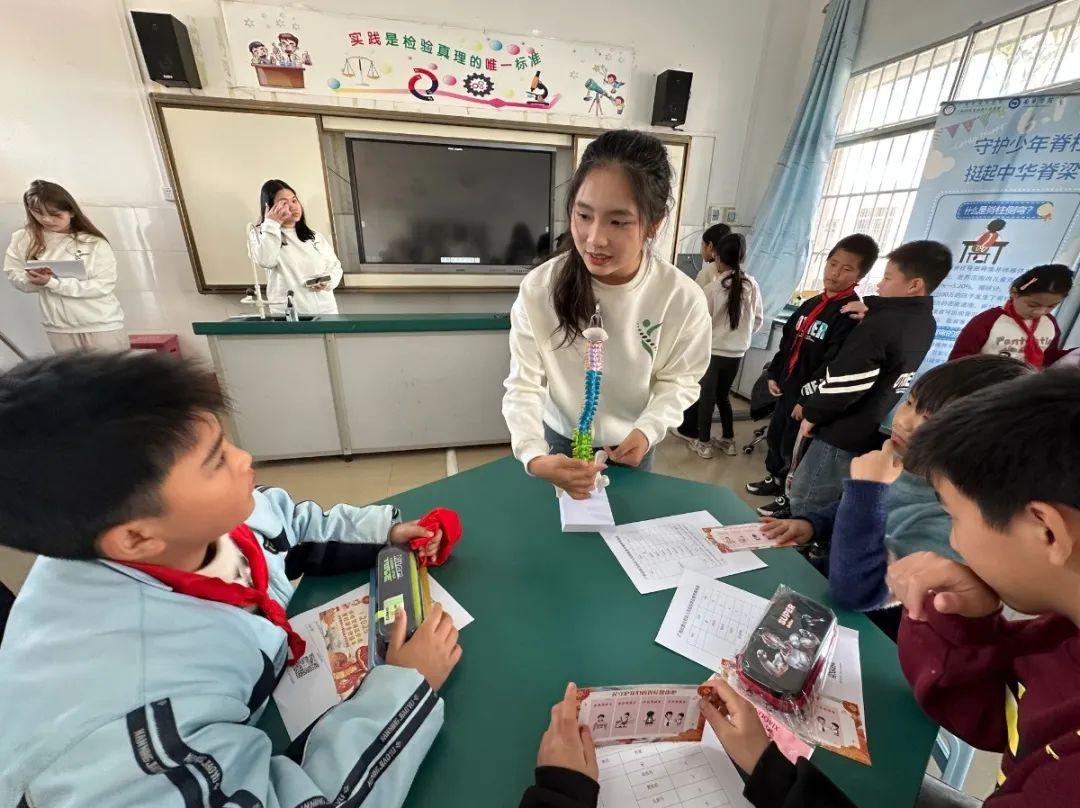 “蛇年就要到了,小朋友知道什么是昆达里尼蛇吗?”“脊柱侧弯是什么?”“怎么预防脊柱侧弯呢?”公益宣讲团通过问题引入,勾起小学生的好奇心和求知欲,通过情境式的故事情节设置和自主卡通IP“小明”进行宣讲,小学生们积极性高涨,与宣讲员互动频繁,现场气氛热烈。通过宣讲,小学生们认识到脊柱侧弯的危害,掌握了脊柱侧弯防控的基础知识,培养起自觉维护脊柱健康的意识。宣讲队员还现场示范教学,让小学生学会了团队自创的脊柱健康操。