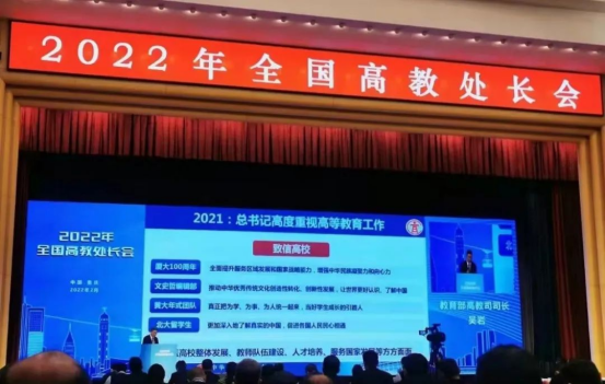 ▲ 2022年全国高教处长会现场,教育部高等教育司吴岩司长作主旨报告