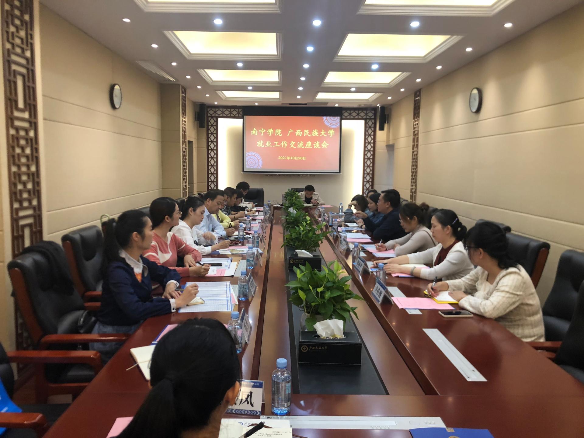10月20日上午,招生就业办公室卢玉光主任带队前往广西民族大学学习交流就业工作,招就办副主任,机电与质量技术工程学院、会计与审计学院、艺术设计学院、交通学院、高博软件学院副书记,管理学院学工科长,教务处实践教学科副科长,招就办工作人员一行10人参加,得到了广西民族大学招生就业处唐艳军处长的热情接待,双方通过座谈会交流。