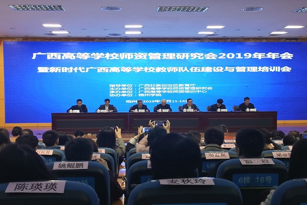 12月11日至14日,广西高等学校师资管理研究会2019年年会暨新时代广西高等学校教师队伍建设与管理培训会在梧州顺利召开。本次会议由自治区教育厅指导,由广西高等学校师资管理研究会主办,广西高等学校师资培训中心承办,梧州学院协办。自治区教育厅教师工作处处长刘冰,梧州学院校长杨奔、副校长麻新纯,广西师范大学原副校长、广西高等学校师资管理研究会第八届常务理事会会长钟瑞添,和来自区内近60所高校的110多人参加了会议。学校教师发展中心主任左婧代表学校参加会议并作了师资队伍建设经验分享。