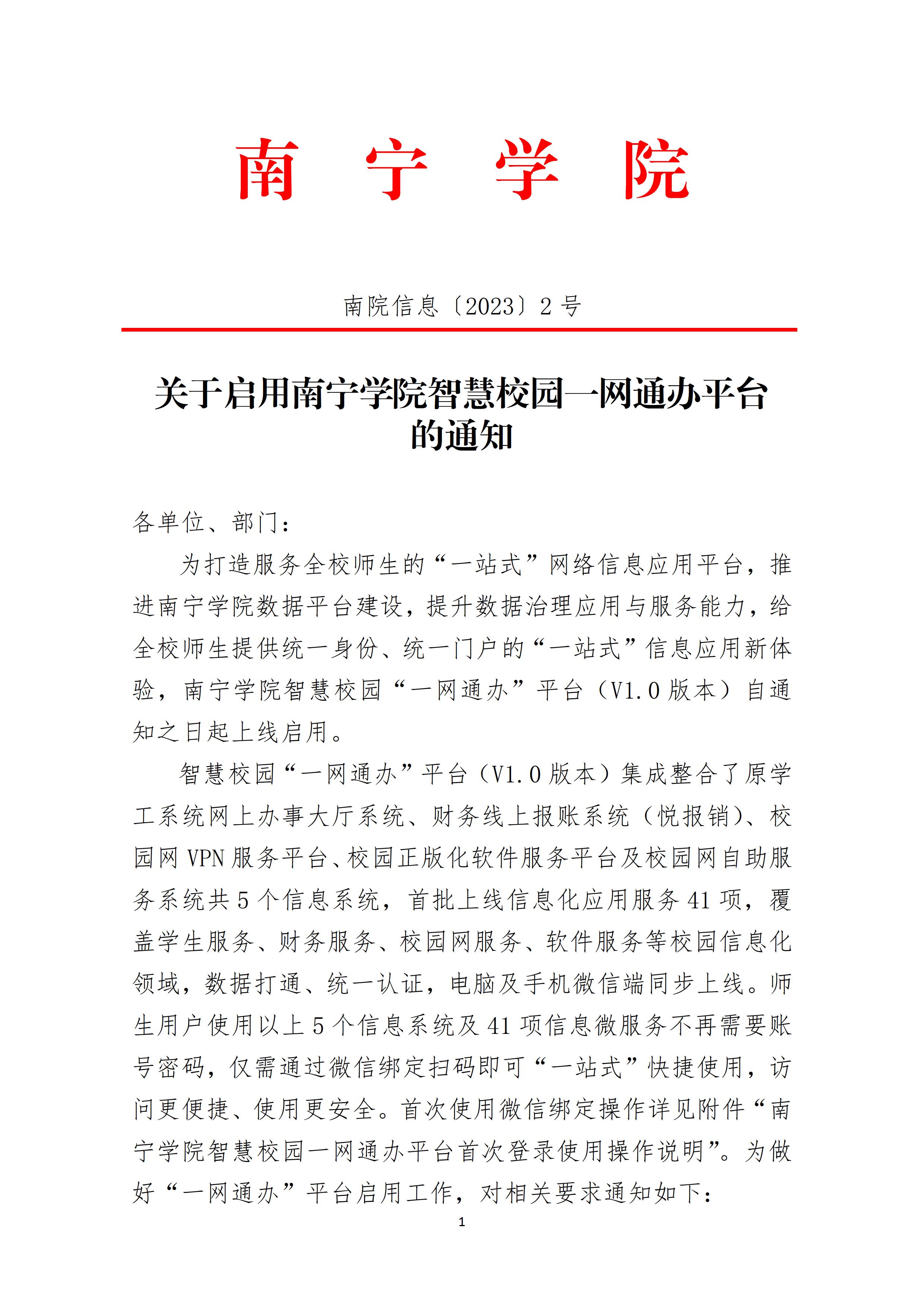 (南院信息〔2023〕2号)关于启用qm球盟会智慧校园一网通办平台的通知