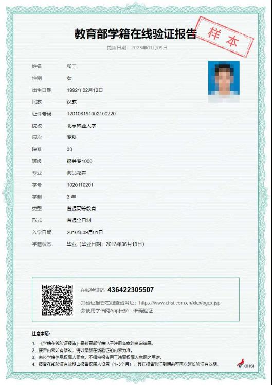 教育部学籍在线验证报告(示例)