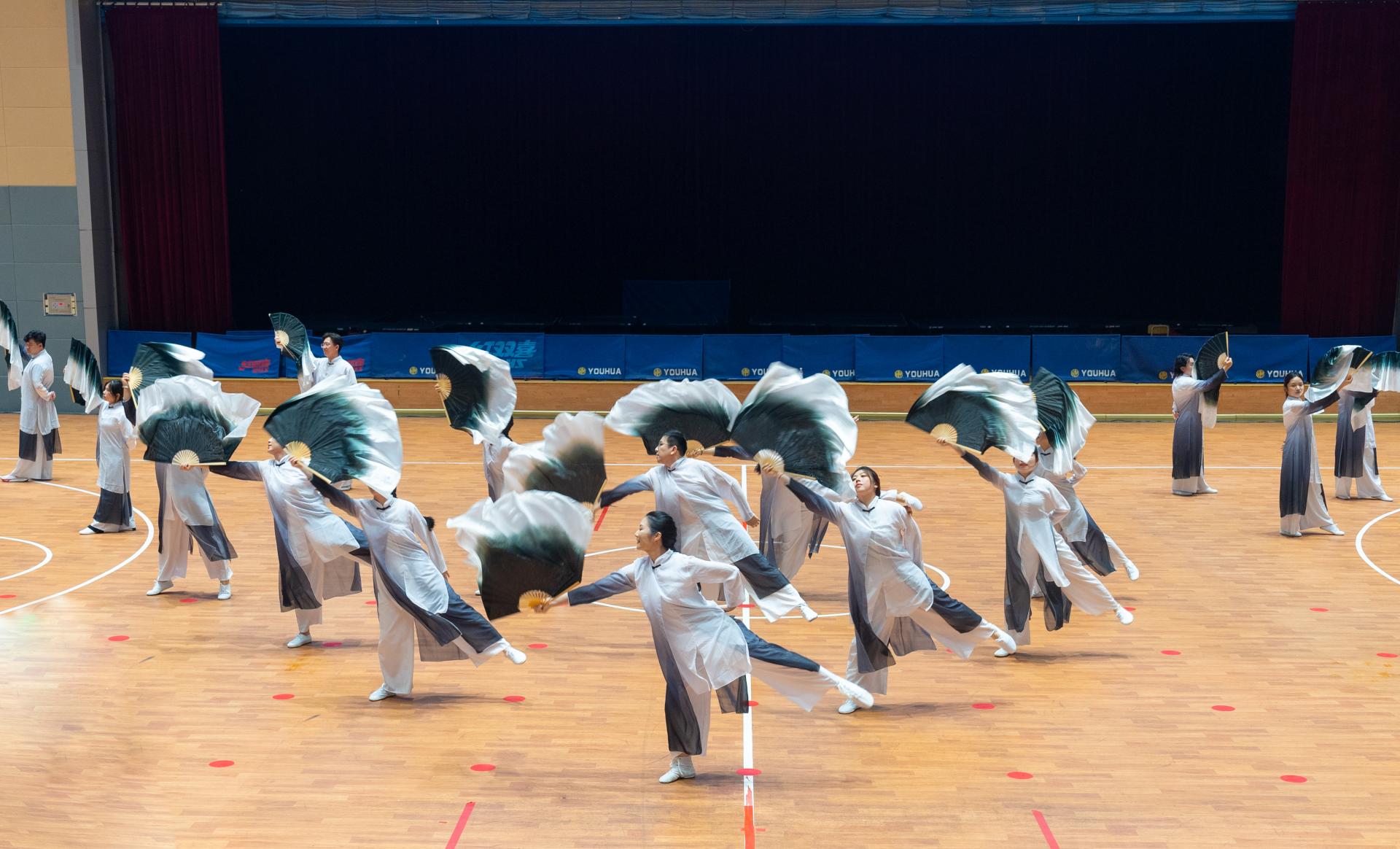 在校党委书记刘彪宣布比赛正式开始后,来自各专业二级学院、马克思主义学院联队、东盟学院联队共12支代表队以3分钟为限,通过创意编排、多元融合的表演,充分展现教职工昂扬向上、拼搏进取的精神面貌。