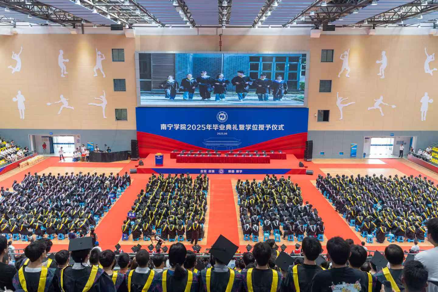 在热烈的氛围中,主席台前排领导为毕业生代表颁发毕业证书,并为自治区优秀毕业生颁发荣誉证书。这些优秀毕业生在校期间学习成绩优异,思想品德、科研创新、社会实践等方面表现突出,充分展现了南院学子的精神风貌。这份表彰既是对获奖同学个人努力的肯定,也是学校人才培养成果的集中体现。他们是全体同学学习的榜样,激励更多南院学子追求卓越、奋发向上。