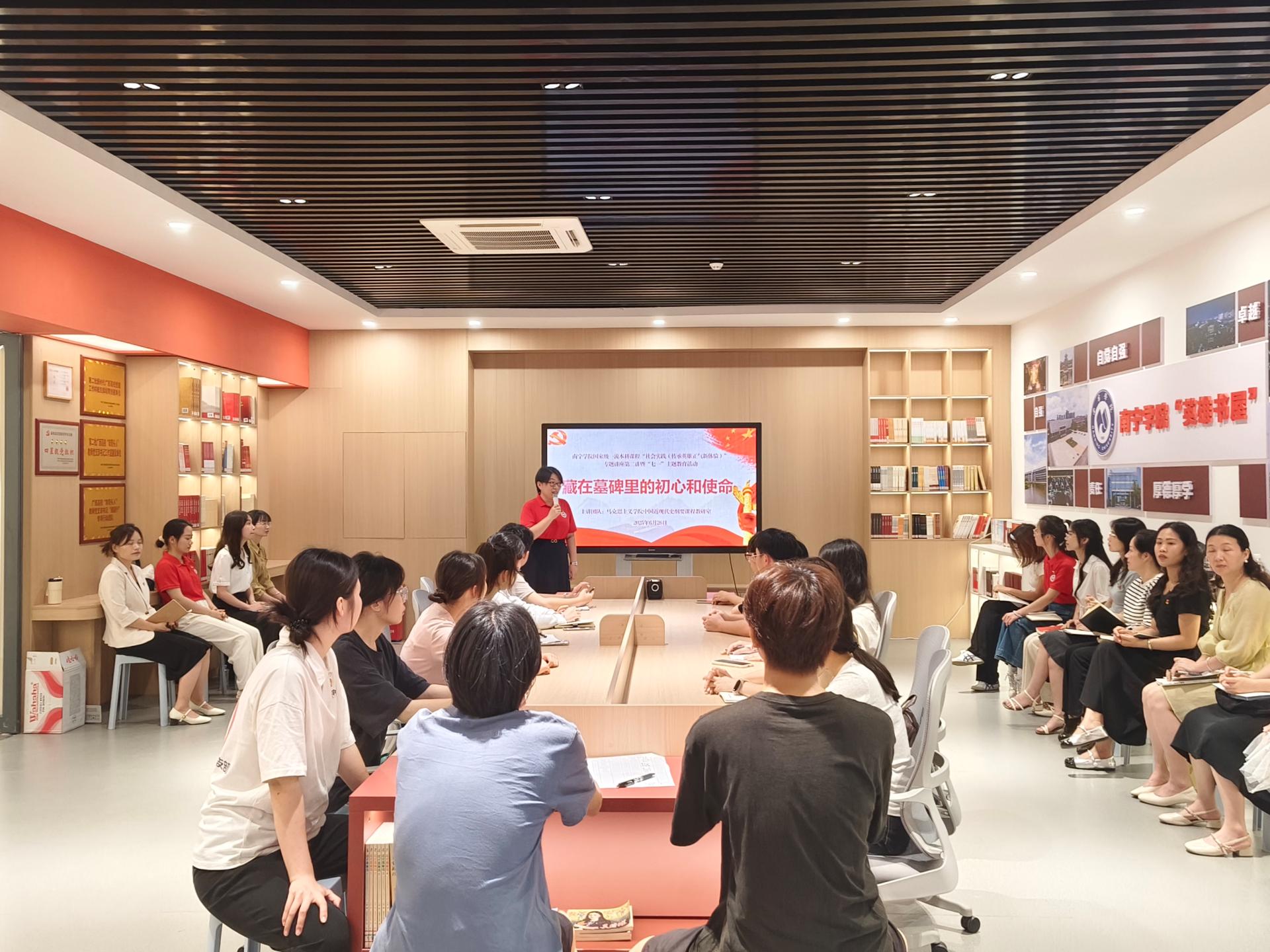 2025年是中国人民抗日战争暨世界反法西斯战争胜利80周年,抗日战争是中国近代以来反抗外敌入侵第一次取得完全胜利的民族解放斗争。在中国共产党成立104周年之际,为铭记历史、缅怀先烈,弘扬伟大抗战精神,从党的历史中汲取智慧和奋进力量,6月26日下午,qm球盟会国家级一流本科课程“社会实践(传承英雄正气新体验)”教学团队在学校英雄精神传承体验馆英雄书屋开展系列讲座第二讲“藏在墓碑里的初心和使命”暨迎“七一”主题党日活动。