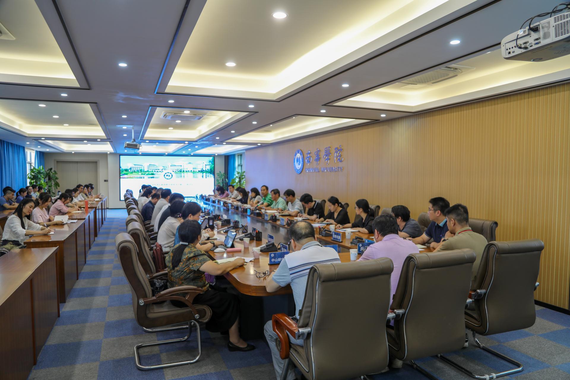 为进一步总结审核评估自我诊断工作,分析问题,落实整改,全面做好迎评攻坚准备,6月26日下午,学校召开本科教育教学审核评估第三次推进会。校长李栋学、副校长李陶深,各部门负责同志、各二级学院院长、书记(副书记)及教学副院长、评建办公室工作人员参加会议。副校长李陶深主持会议。