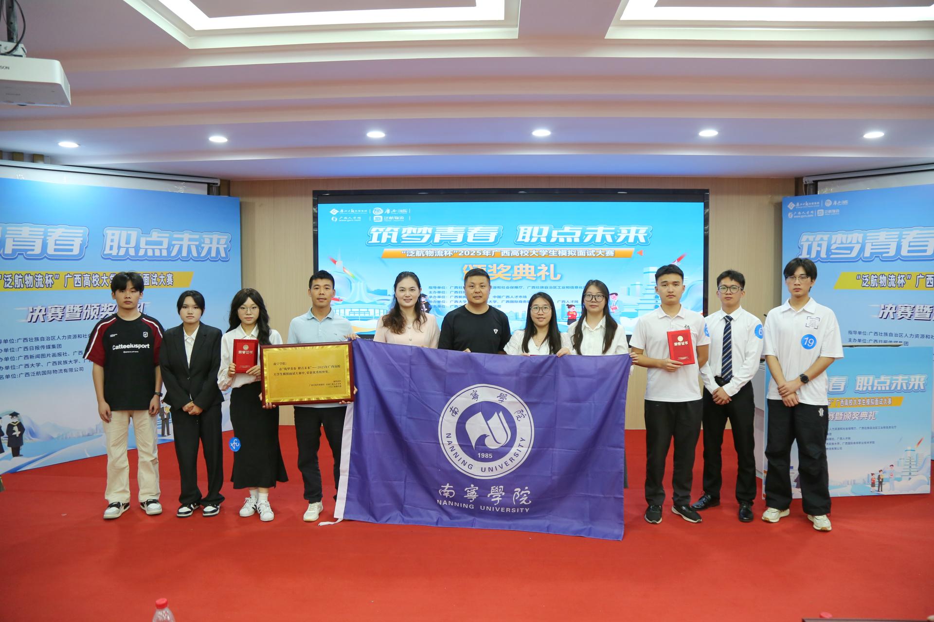 6月28日,学生工作处(就业指导服务中心)副处长(副主任)田爽、人工智能学院党委副书记李珠珠(“职”达未来工作室负责人)、辅导员吴秀海、梁肖杨带领我校7名学生前往广西大学,参加由自治区人力资源和社会保障厅、自治区工业和信息化厅指导,广西日报传媒集团主办的“筑梦青春 职点未来”——2025年广西高校大学生模拟面试大赛决赛。在初赛期间我校共组织98名学生积极报名,经过层层选拔,最终7名学生进入决赛并荣获优秀奖,学校荣获优秀组织奖。