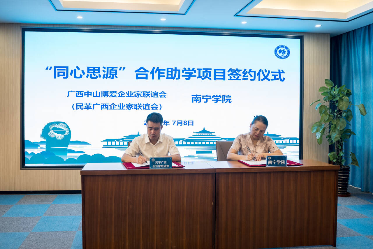 双方举行“同心思源”助学项目签约仪式,三项学生资助项目成功落地实施。顺利签约标志着民革广西企业家联谊会对qm球盟会教育事业的支持迈出实质性步伐,通过助困、奖优和育人的模式,推动社会资源与教育需求对接等形式,帮助更多家庭经济困难的学子走出困境,点亮他们的求学之路,生动彰显了民革党员企业家主动担当社会责任的精神风貌。