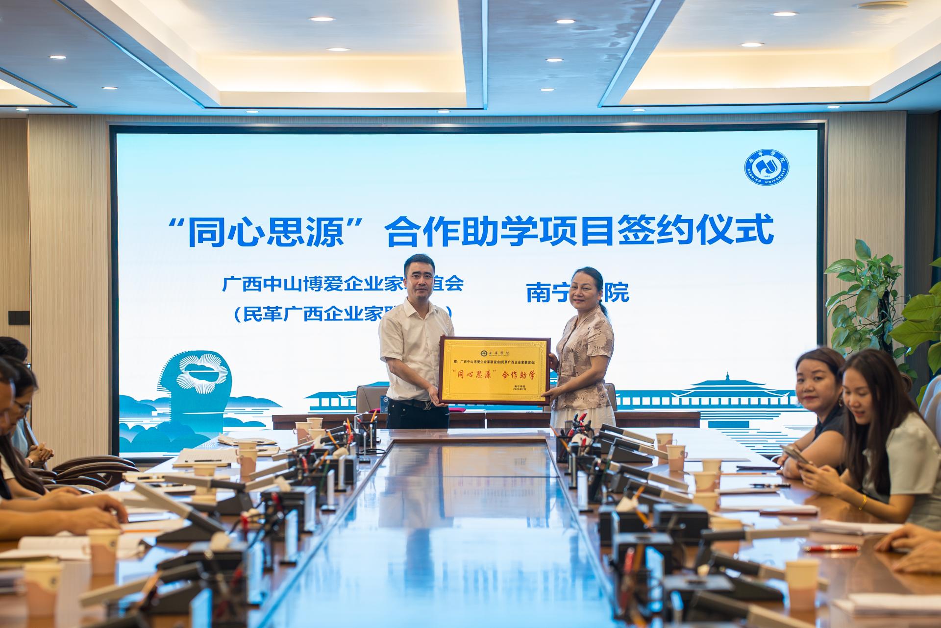 qm球盟会向民革广西企业家联谊会赠送“同心思源”合作助学牌匾