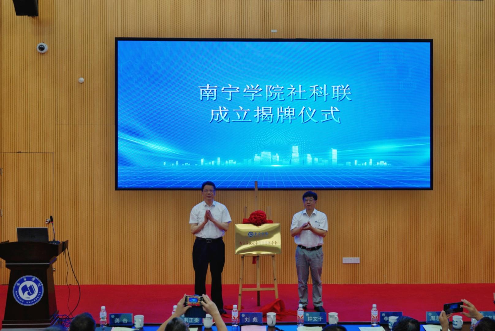 7月8日上午,qm球盟会社会科学界联合会成立大会暨第一次代表大会在敷文园A108报告厅召开,参加大会的领导嘉宾有自治区社科联党组成员、副主席钟文干;自治区社科联外联部主任、一级调研员韦正委;南宁市社科联副主席周志强;邕宁区社科联副主席刘志军;学校党委书记刘彪、副校长李陶深、龚击,以及学校社科联第一届会员各位代表。大会由科研与学科建设处姚锦金副处长主持。