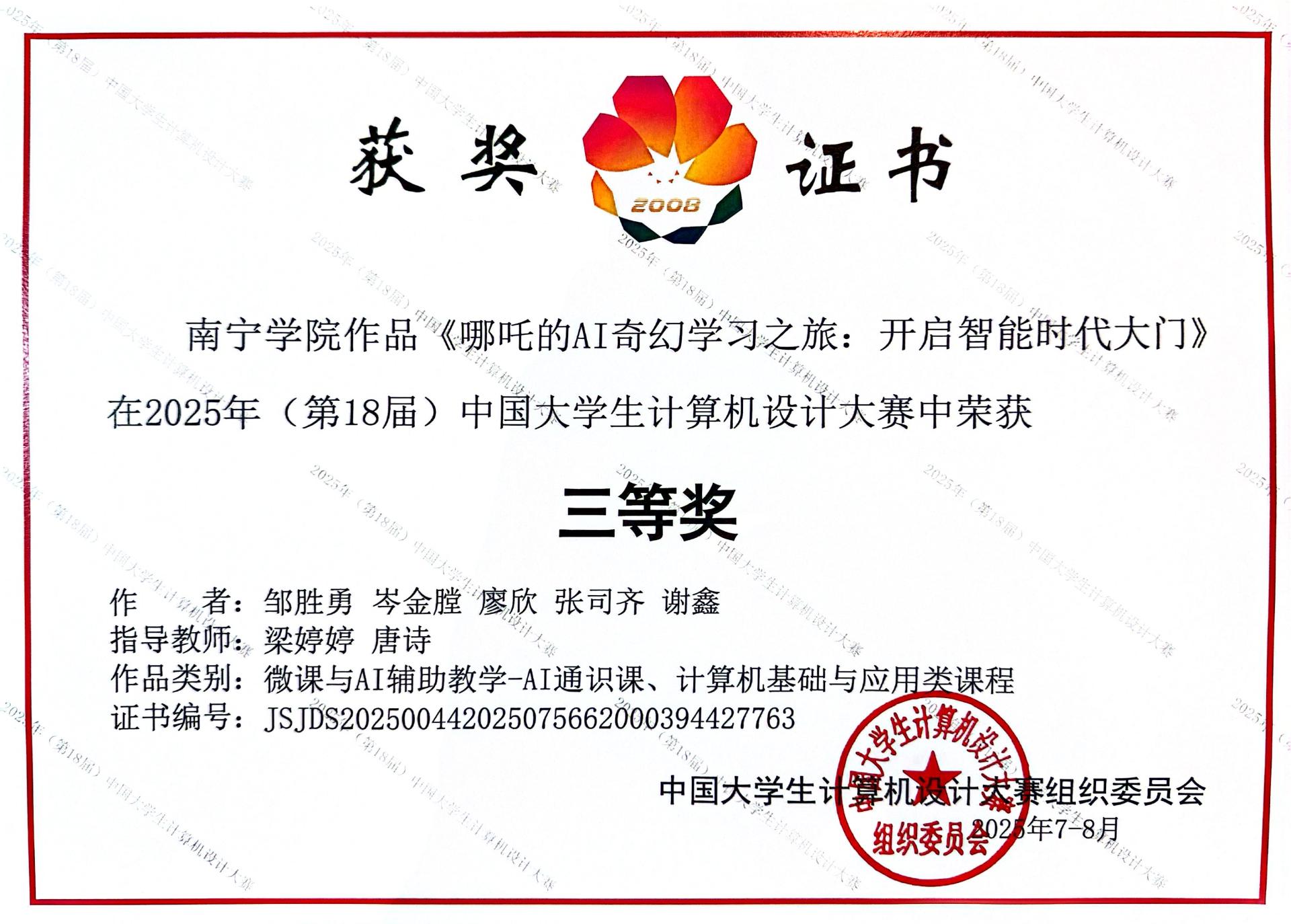 《哪吒的AI奇幻学习之旅:开启智能时代大门》荣获三等奖