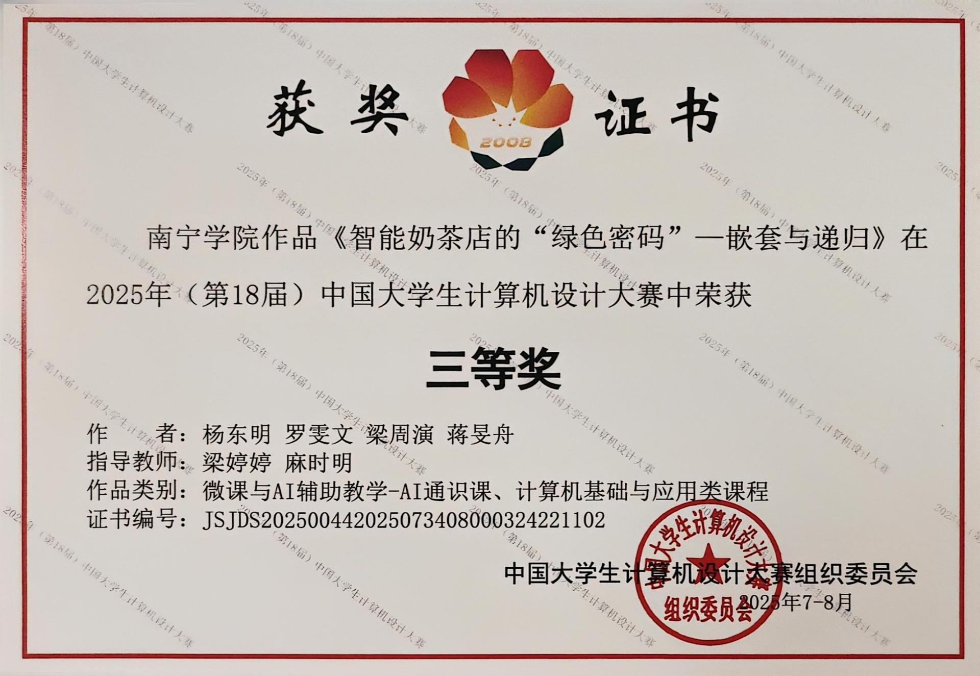 《智能奶茶店的绿色密码—嵌套与递归》荣获三等奖
