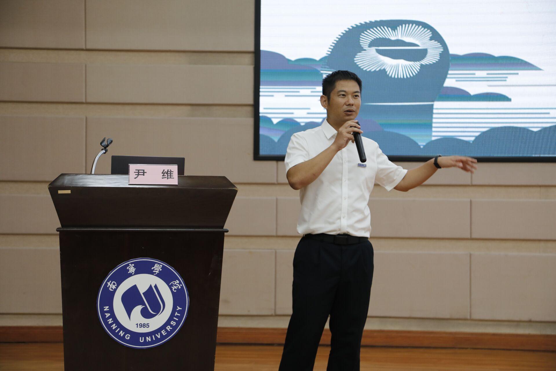后勤保障与基建管理处处长尹维主讲校园安全教育,涵盖宿舍安全、心理健康、消防交通及食品卫生等方面。讲座语言幽默、互动热烈,在轻松氛围中强化了“安全无小事”的意识。