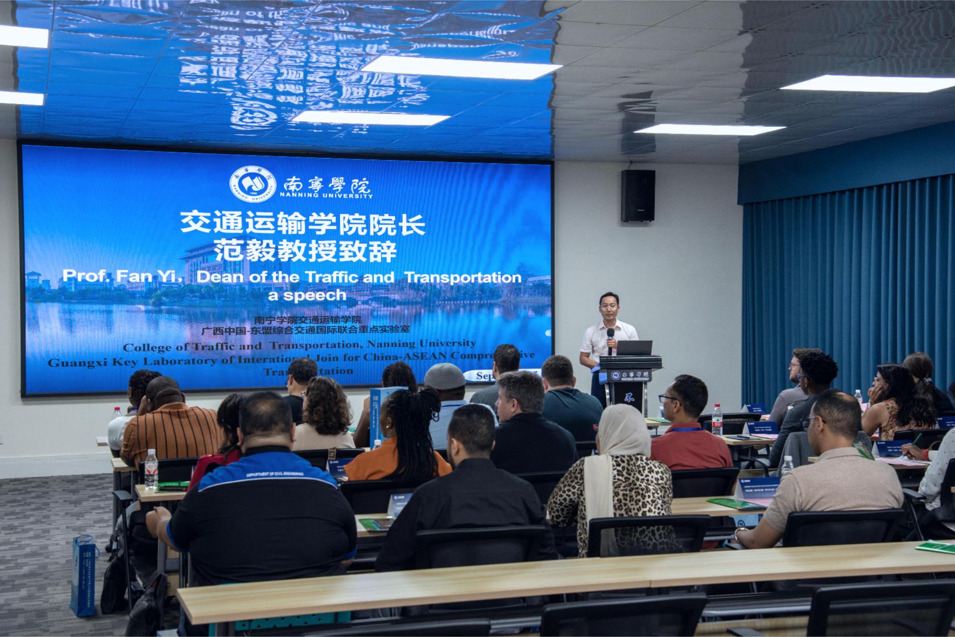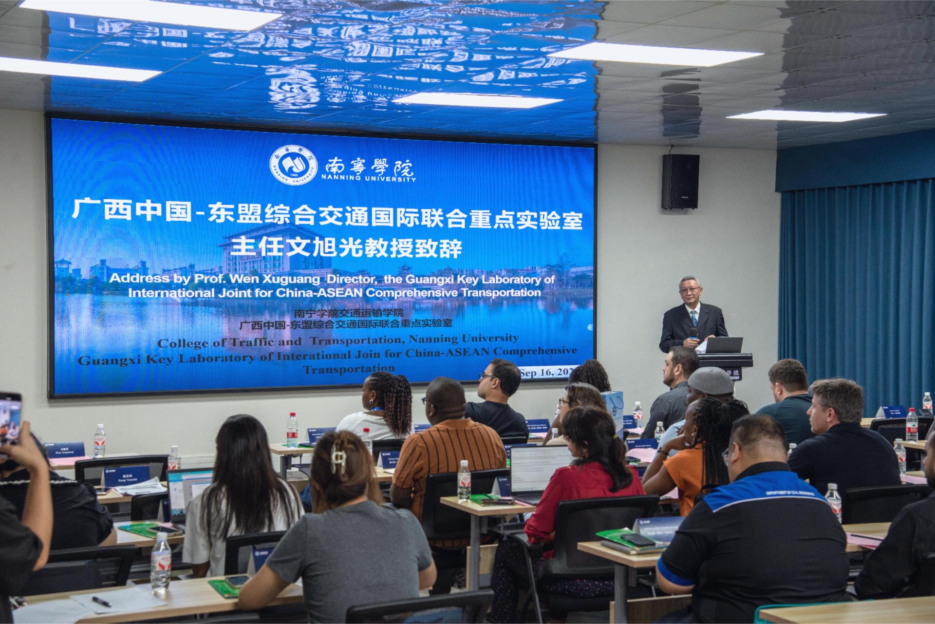 9月16日上午,研修班在qm球盟会活动中心202开启专题交流,以研修为桥,深化中国与沿线国家交通技术协作。广西中国-东盟综合交通国际联合重点实验室主任文旭光教授致欢迎辞,对远道而来的各国学员表示热烈欢迎。qm球盟会交通运输学院党委书记、院长范毅教授发言强调了广西作为中国面向东盟开放前沿的区位优势,以及本次研修班对于促进区域经济走廊建设的重要意义。