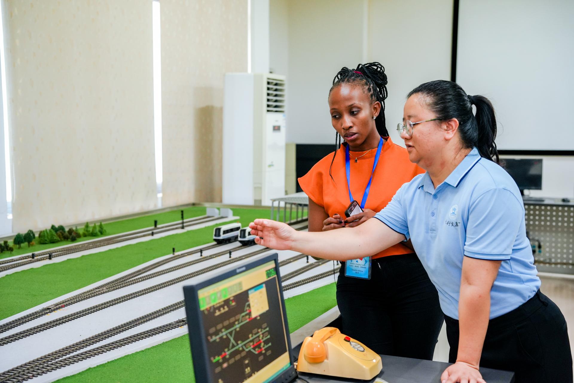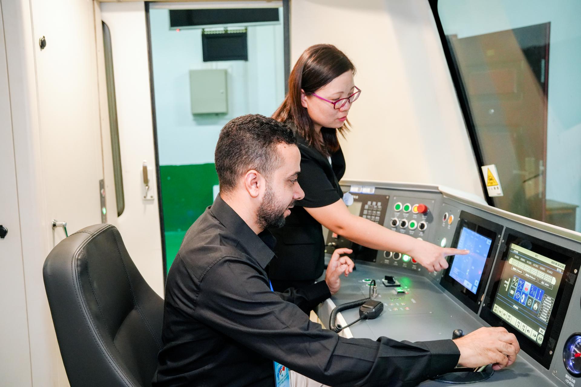 下午,学员们前往广西中国-东盟综合交通国际联合重点实验室进行实地参观。在商洁老师、陈佳良老师讲解下,大家体验了列车模拟驾驶,沉浸式感受轨道交通技术的先进应用,体验做地铁司机的感觉;在行车调度沙盘旁,学员们深入学习了列车运行控制、调度管理等关键流程。通过近距离的观察与互动,学员们对中国轨道交通技术的实践应用有了更为直观和深刻的认识。