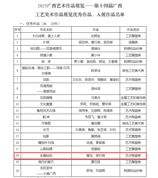 我校教师作品入选2025广西艺术作品展览——第十四届广西工艺美术作品展览优秀作品