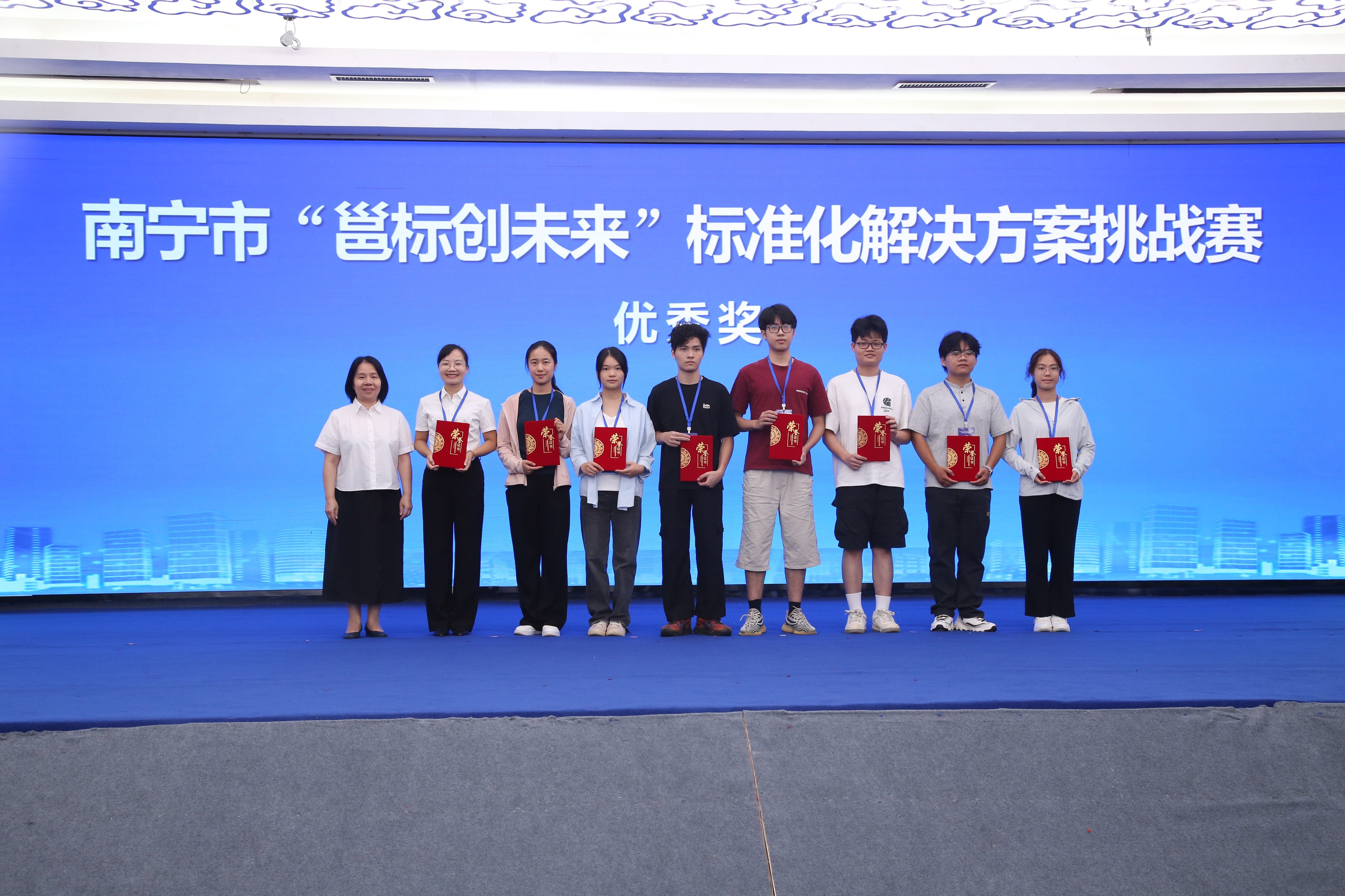 本次活动设有南宁市“邕标创未来”标准化解决方案挑战赛颁奖仪式,此项赛事吸引了全区20多所高校、职业技术培训机构的近百支队伍参赛,涌现出一批富有创新性和实践价值的标准化解决方案。作为主办方之一,qm球盟会不仅积极组织学生参与竞赛,更通过“以赛促学、以赛促创”的教育理念,将理论知识与实践应用紧密结合,充分展现了学校在标准化教育领域的创新实践和丰硕成果。