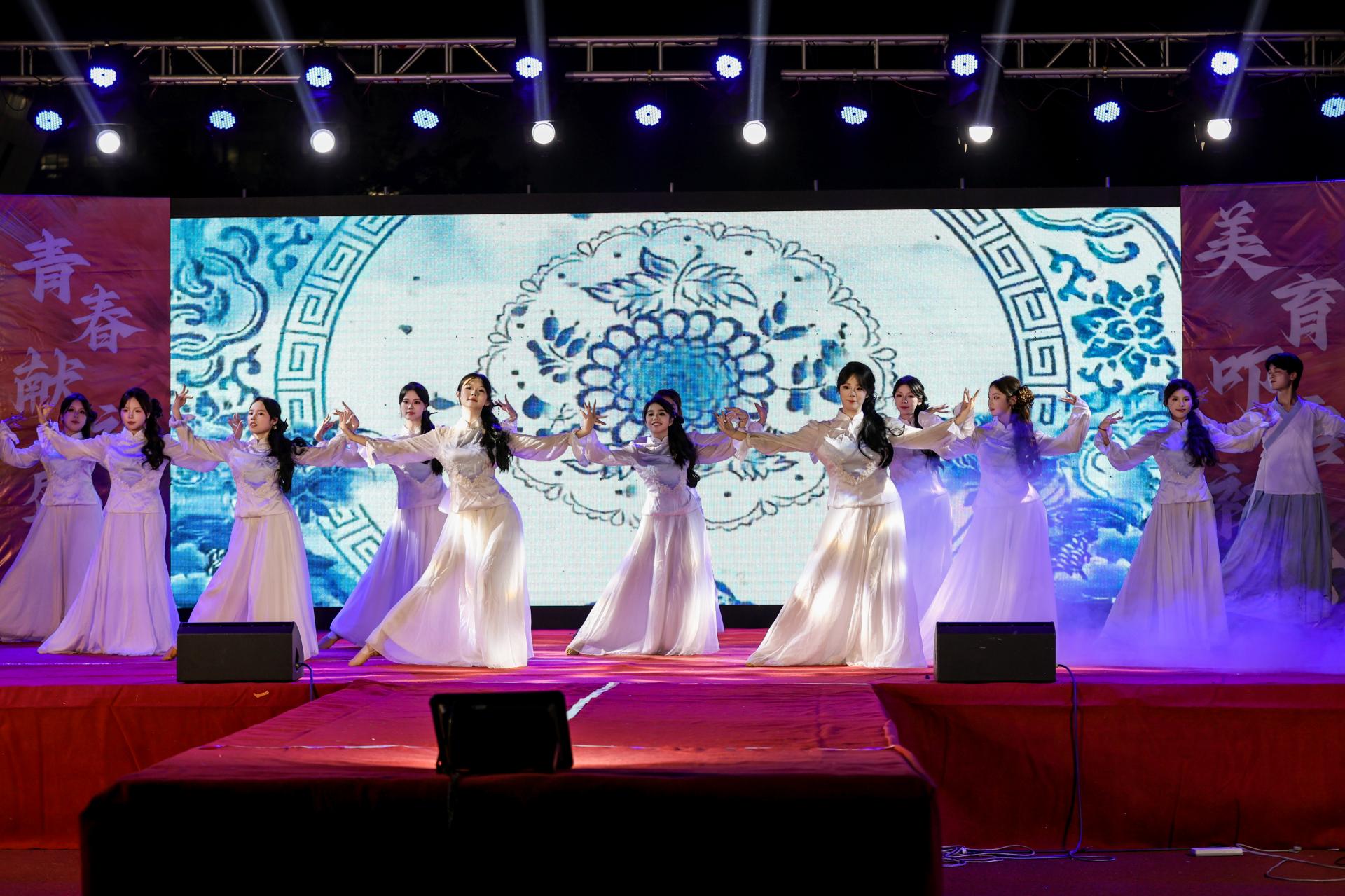 虽已入学月余,晚会现场依然气氛热烈。激昂的器乐、深情的合唱、优雅的礼仪展示与动感的街舞轮番上演,《闪耀吧,青春的火光》《青花瓷》、《英雄》等节目,不仅展现了学长学姐的风采,更让新生们看到了校园文化的丰富多彩。这堂特殊的“美育实践课”,将开学以来学校所倡导的价值观教育,以艺术的形式进行了生动呈现。