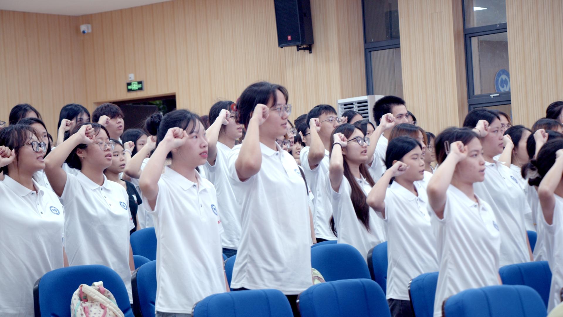 校团委书记邓斌随后以三个生动比喻勉励全体学员:一要思想“补钙”,用好“理论加油站”,做“脑子里有东西、心里头有信仰”的硬核青年;二要行动“打卡”,拒当“躺平”的旁观者,勇做服务同学的“参与者”与“领头雁”;三要作风“圈粉”,脚踏实地,潜心钻研,成长为纪律过硬的“铁军”青年。
