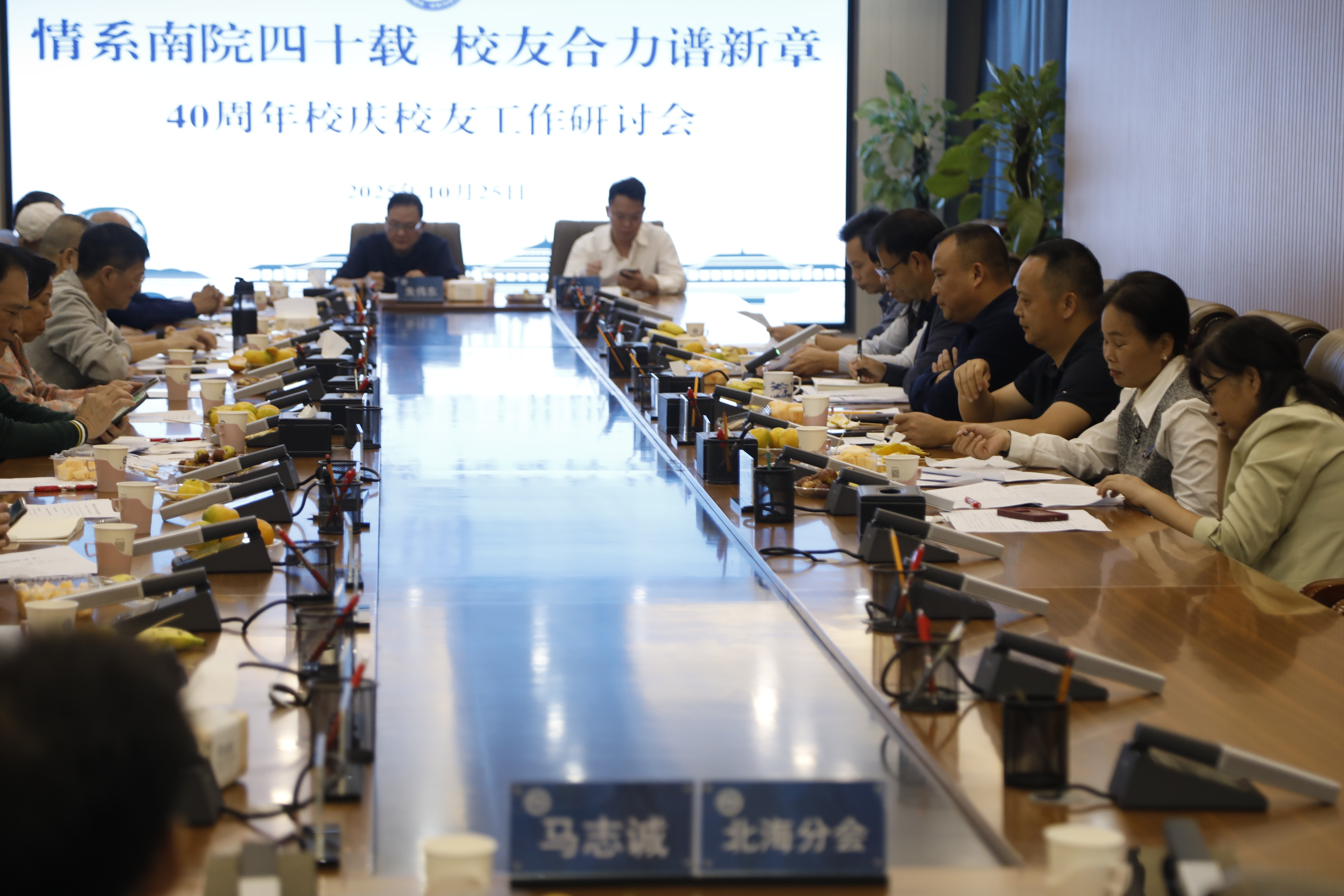 四秩传薪火,邕江涌深情。10月25日下午,学校在行政楼400会议室召开qm球盟会40周年校庆校友工作座谈会。学校党委委员、副校长、校友总会会长龚击及学校相关部门、校友总会领导陈铁、李林伟、杨小凤、黄丽军、陆海兰、蓝军斌与来自各地校友分会的会长、副会长、秘书长及校友代表共聚一堂,围绕学校40周年校庆有关议题展开深入交流,共话母校发展。会议由党委办公室、校长办公室、校友工作办公室主任李林伟主持。