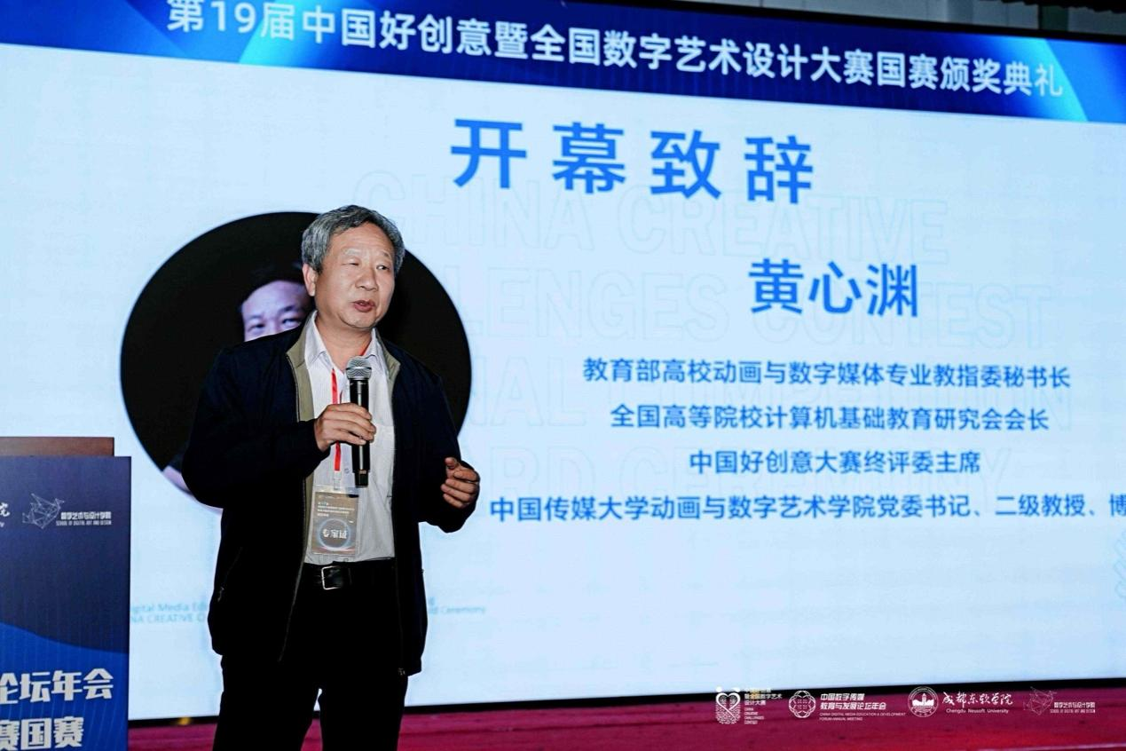 教育部高校动画与数字媒体专业教指委秘书长、中国好创意大赛终评委主席、中国传媒大学动画与数字艺术学院党委书记、二级教授、博导黄心渊发表致辞