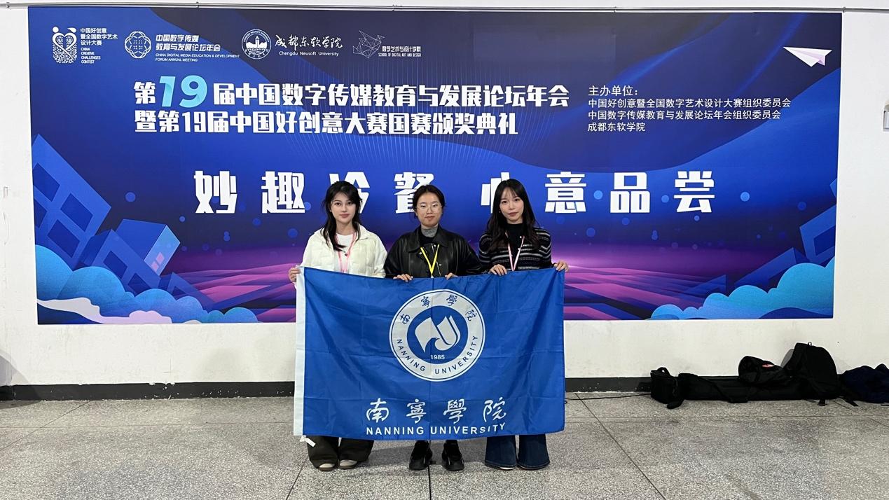 11月7日-9日,第19届中国数字传媒教育与发展论坛年会暨第19届中国好创意暨全国数字艺术设计大赛国赛颁奖典礼在成都东软学院隆重举行。艺术与设计学院师生在此次学科比赛中表现优秀,由李悦老师带领获奖学生代表罗予彤、李青霜同学前往参加活动,收获了荣誉与宝贵的学习经验。