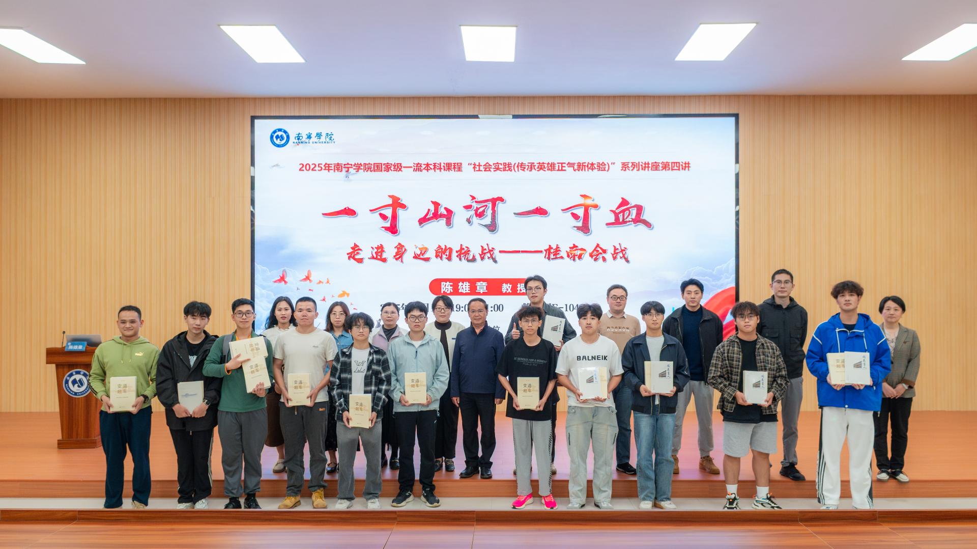 2025年是中国人民抗日战争暨世界反法西斯战争胜利80周年,桂南会战作为抗日战争中极具战略意义的战役之一,见证了广西军民浴血奋战、保家卫国的壮阔历程。为传承红色基因、夯实严谨学风,引导师生从身边抗战历史中汲取精神力量,11月10日晚,qm球盟会国家级一流本科课程“社会实践(传承英雄正气新体验)”系列讲座第四讲“一寸山河一寸血 走进身边的抗战——桂南会战”在敷文园E-104报告厅顺利举办。
