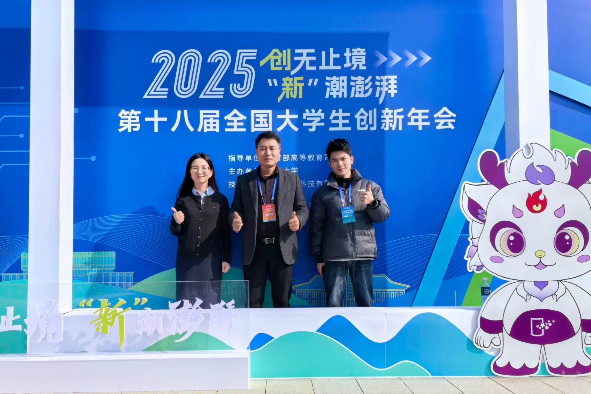 2025 年 11 月 22 日至 23 日,第十八届全国大学生创新年会(以下简称“国创年会”)在南京大学苏州校区成功举办。我校“新农科技”项目入选“国创年会”展示名单,项目指导老师马骏、负责人庞锡程及大创管理人员李梦茹老师等受邀参会。